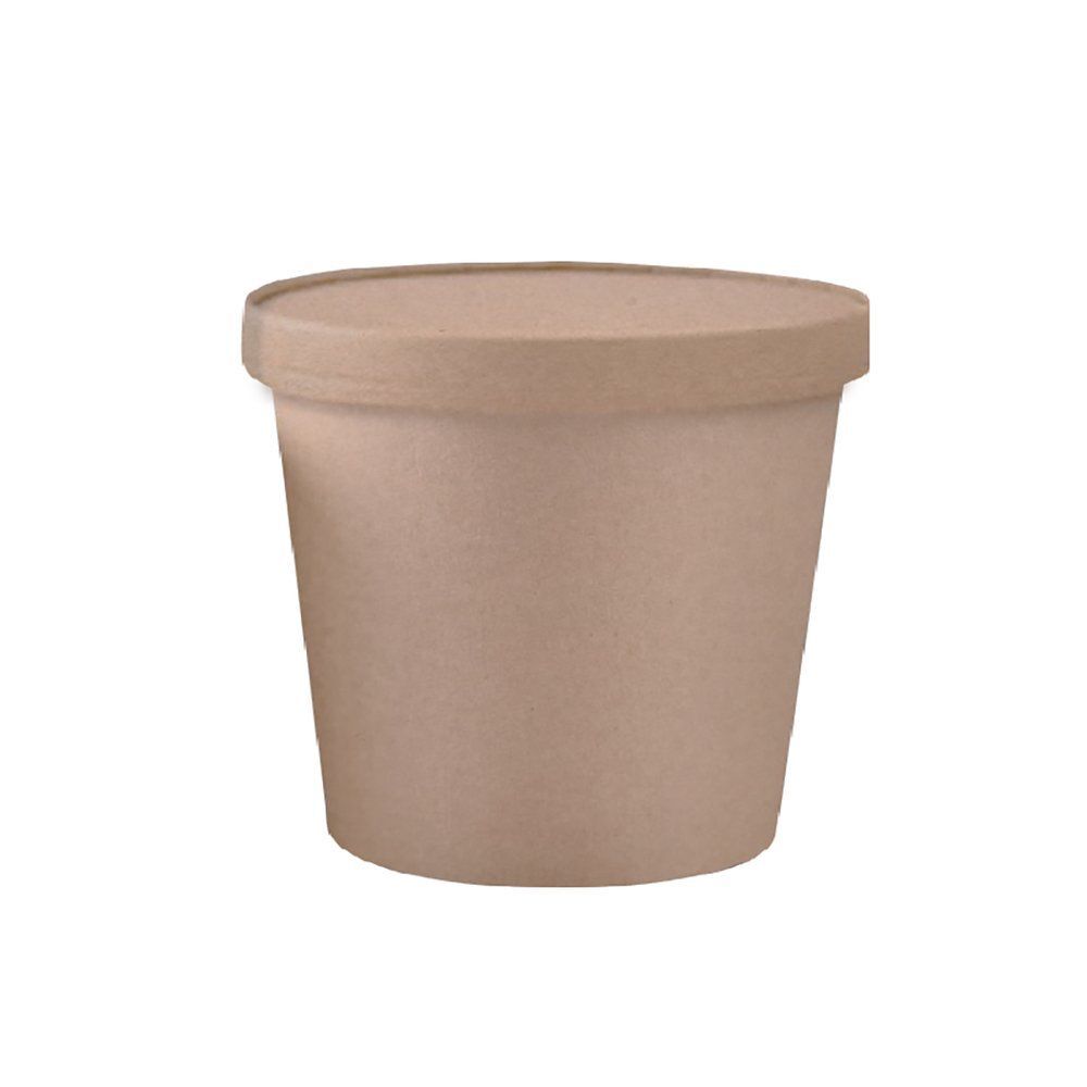 Купить Контейнер суповой с крышкой, 480 мл, 9,8*7,5*10 см, крафт-бумага, (1Упаковка=25 шт) Garcia de Pou